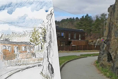 Der ligger en børnehave på Berhusveien ... i min tankeløshed startede jeg på en skitse mens jeg stor i deres indkørsel ... sidst på eftermiddagen hvor "alle" skulle hente unger .... det var ikke smart ... mange afbrydelse ... hyggelig snak med flere ... og så var det sikkert forstyrrende for nogle at jeg stod der midt i det hele ... der blev en slags skitse ud af det ... som kan ses i videoen herunder .....