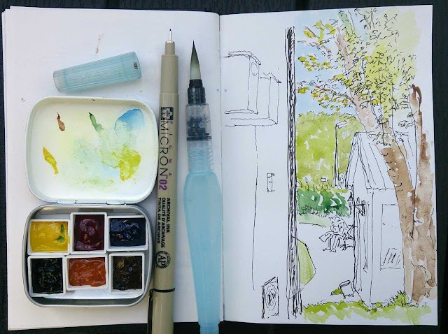 .... i dag lavede jeg en skitse som viser ca halvdelen af det som engang fungerede som parkeringsplads ( med en af områdets officielle P-pladser i baggrunden ).